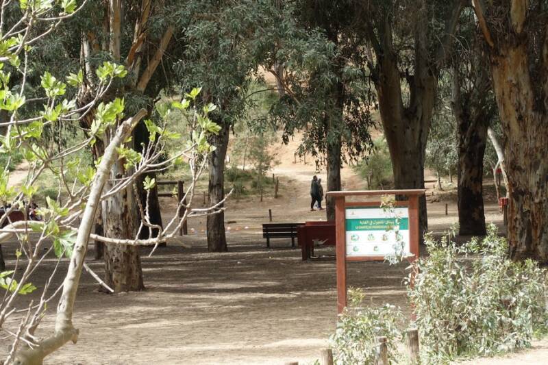 Naast de camping ligt een vrij groot bos met hele oude bomen. Eigenlijk is het een soort park. Zondag werd hier volop gepicknickt maar toen wij gistermorgen een rondje gingen wandelen was het stil op wat joggers na. Hier en daar lag nog wat afval, vlak naast de prullenbak, maar dat is normaal in Marokko.