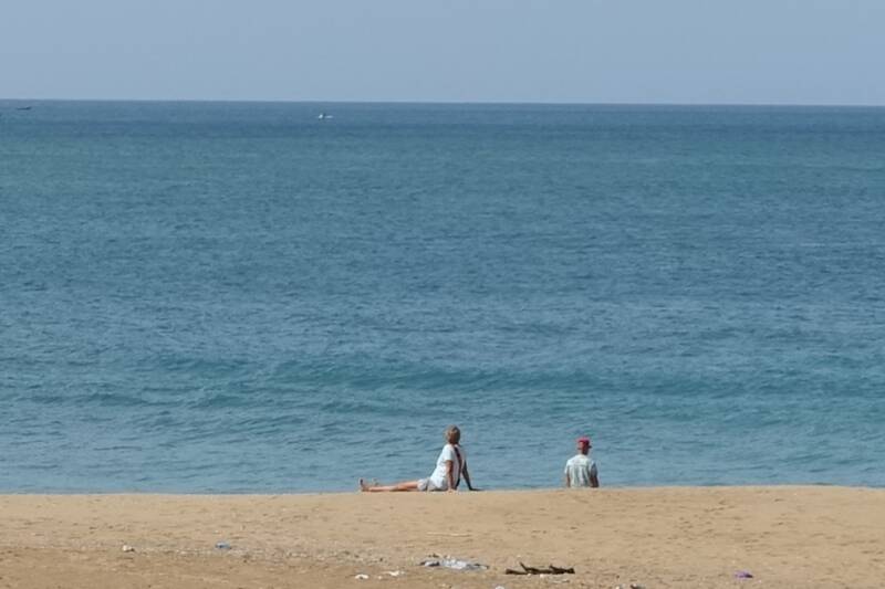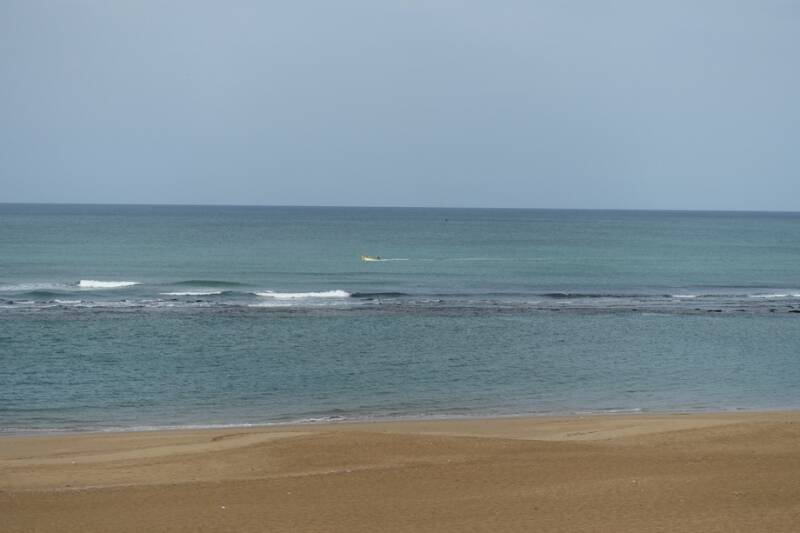 Voorbij de moskee zijn we weer naar beneden gelopen naar het lagunestrand. Volgens het opschrift op de muur moet er ook nog een restaurantje zijn maar het hek was dicht.