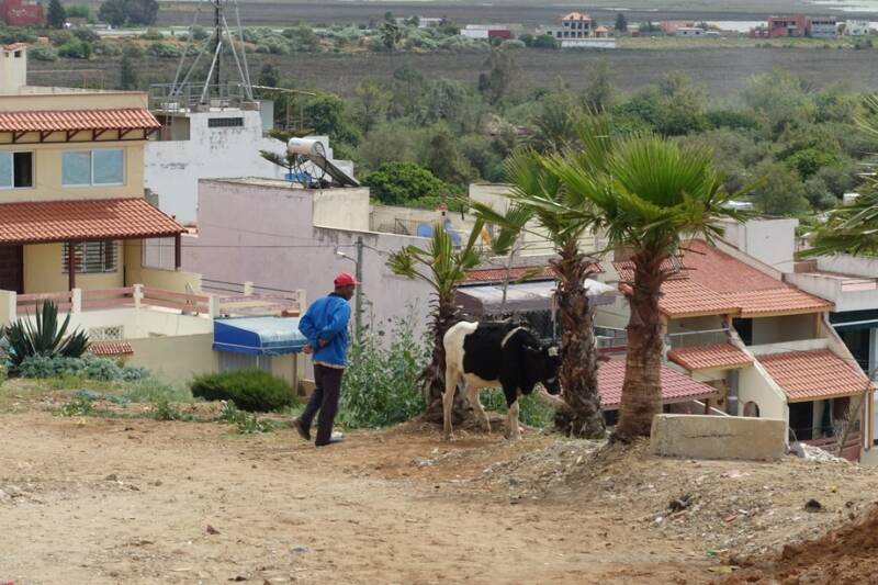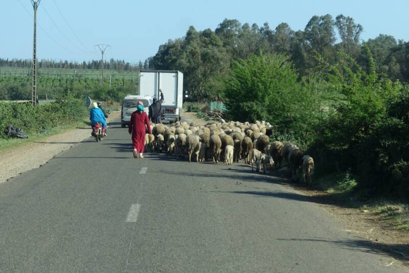 Onze rit vandaag ging naar Asilah. De afstand was niet zo groot, 85 km., dus zijn we binnendoor gegaan. De weg was niet overal heel goed maar wel leuk om te rijden en ging door een gebied met veel land- en tuinbouw. Af en toe file door een kudde schapen of trekkers op de weg. We kwamen ook dwars door Larache, een grote westers aandoende stad met vele flatgebouwen.