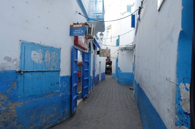 Na het eten zijn we de medina weer uitgelopen door de Blauwe Poort en hebben daar een taxi terug naar de camping genomen.