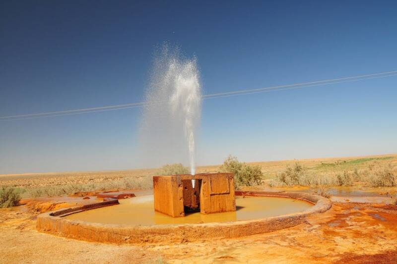 Onderweg zijn we een paar keer gestopt, zo ook bij de zoutwaterbron die niet meer spuit. Drie jaar geleden spoot hij nog wel en nu is alles droog en zijn ook de kleuren op de bodem helemaal verdwenen.
