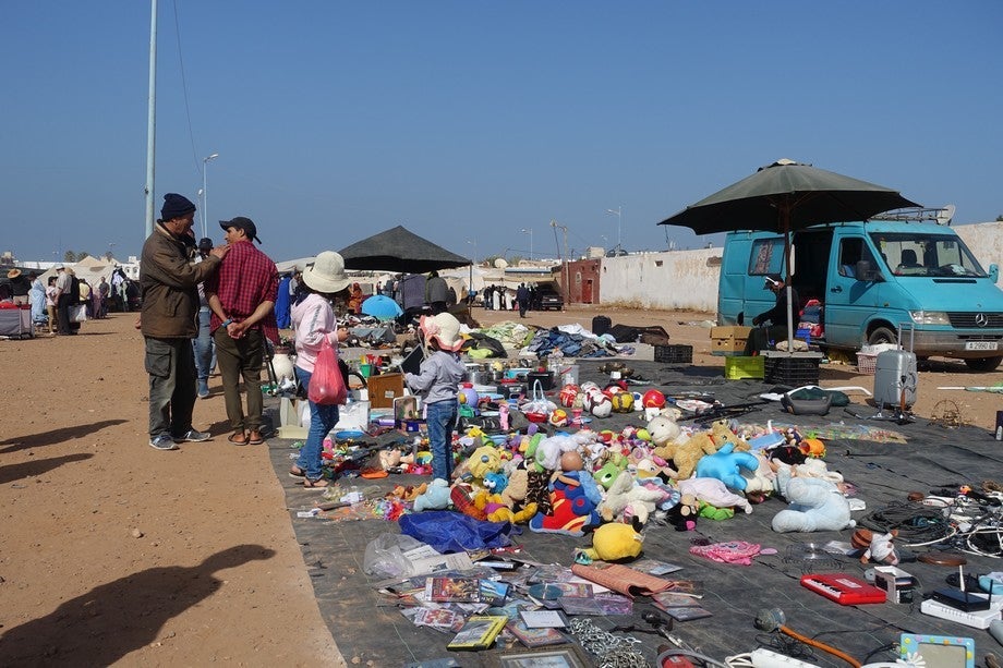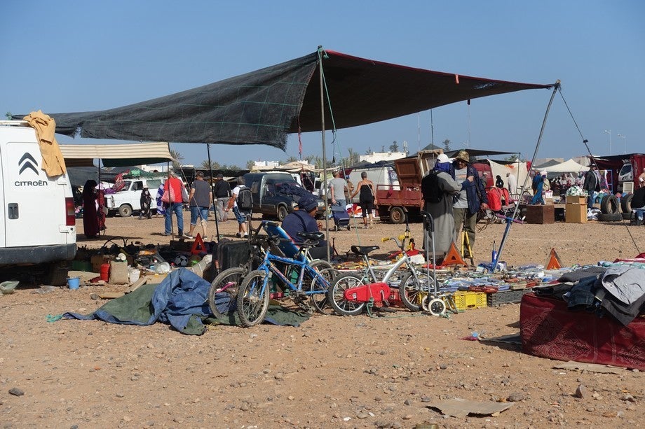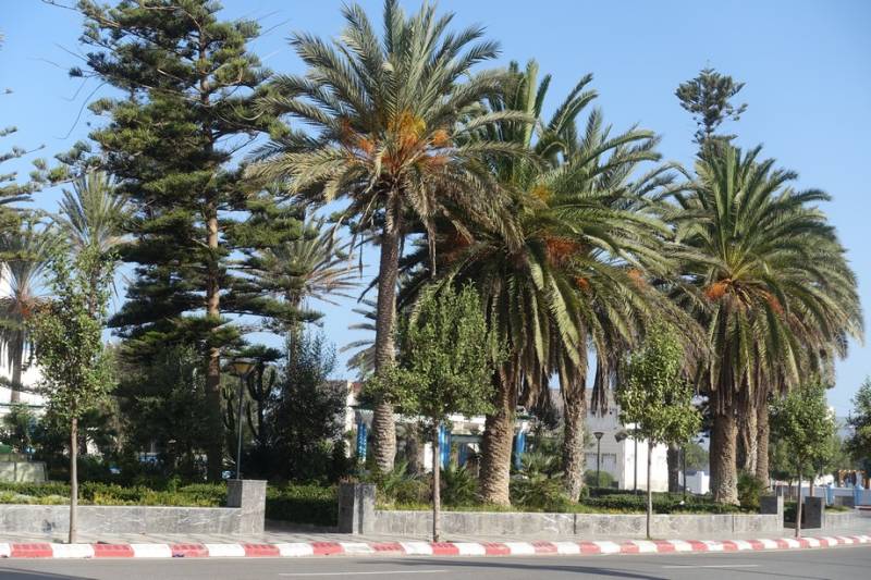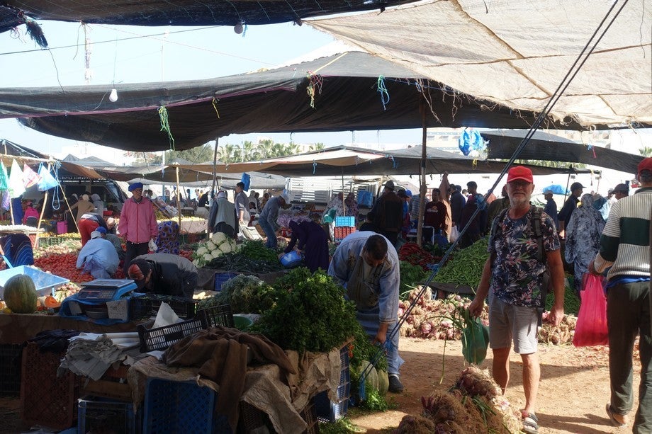 Zondags is het markt in Sidi Ifni. We zijn hier al vaker geweest en het loopje er naartoe voelde heel bekend. Het is een leuk stadje met parkjes langs de route naar het soukterrein.