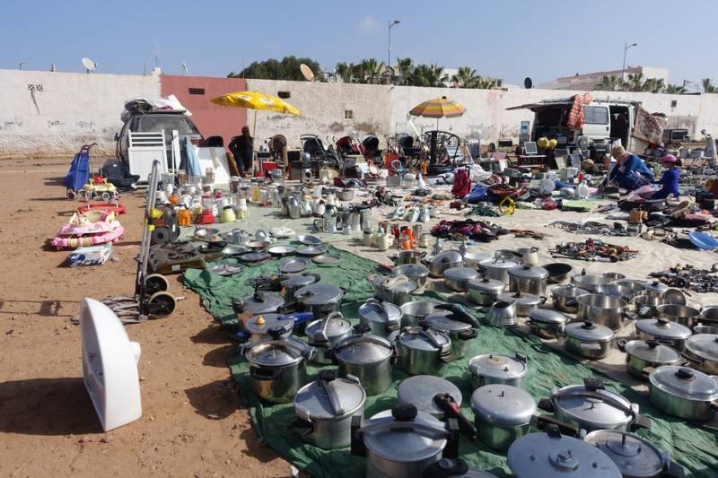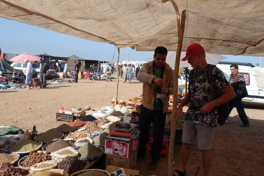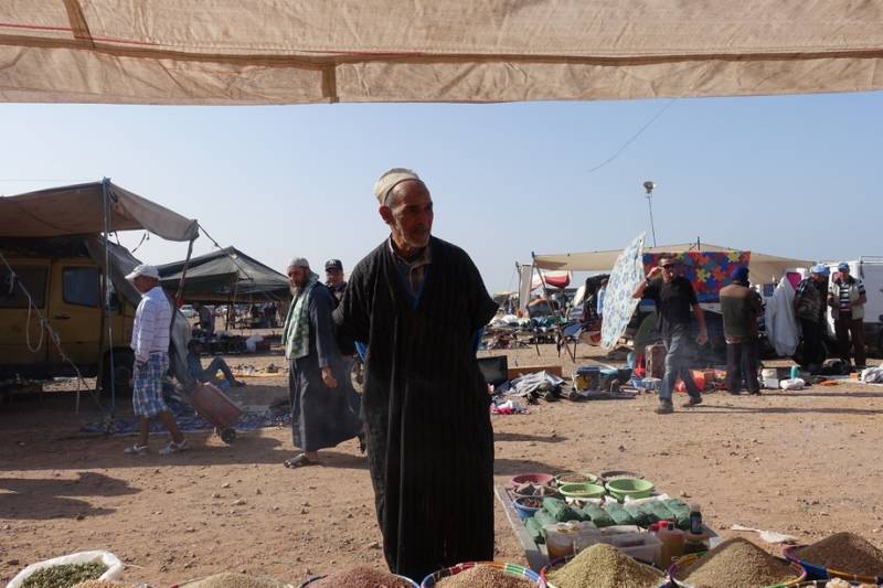 Het aanbod op de souk is heel gevarieerd, je kunt het zo gek niet bedenken of het is er wel. We zijn heerlijk overal langsgestruind en hebben weer groente en fruit ingeslagen. Op de markt in Had Dra viel het ons op dat het bijna alleen mannen waren die groente kochten, hier doen de vrouwen dat zelf.