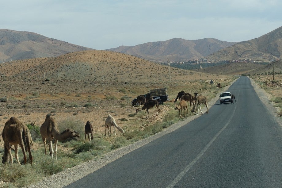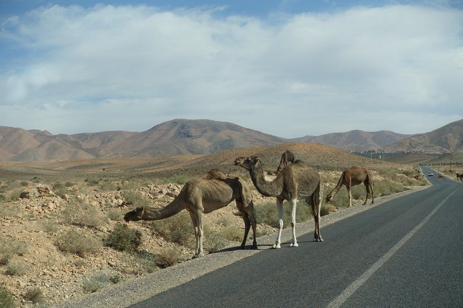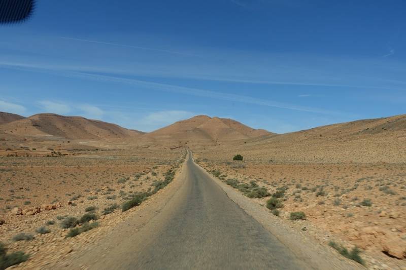 Hierna ging het richting Tafraoute over een weg die we nog niet eerder hadden gedaan. Al was de weg hier en daar een beetje smal, het was een mooie route. Dorpjes onderweg, overstekende kamelen en schapen en natuurlijk bergen. Voor de lunchpauze vonden we een mooi rustig plekje, het was daar helemaal stil om je heen.