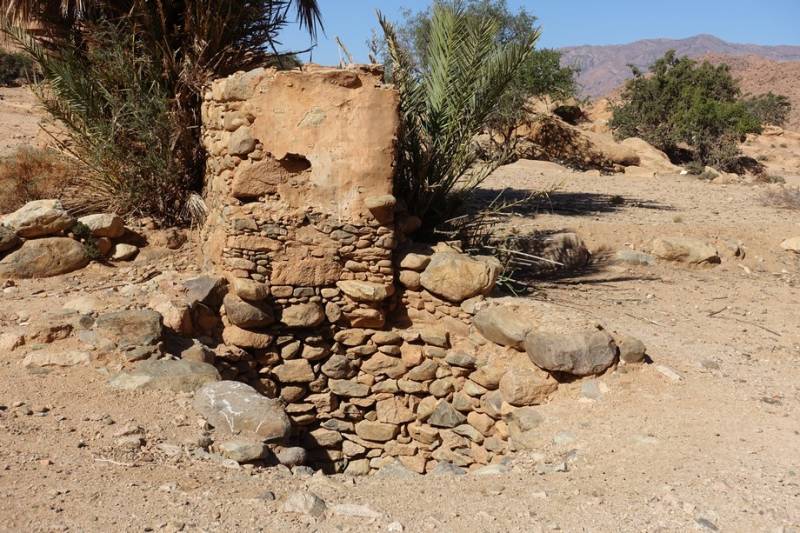 Hier en daar staan restanten van huisjes en we kwamen ook langs een bijna droge waterput. Ooit hebben hier dus mensen gewoond.