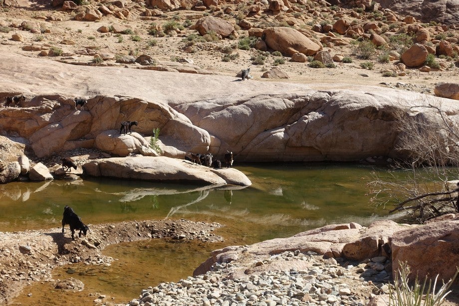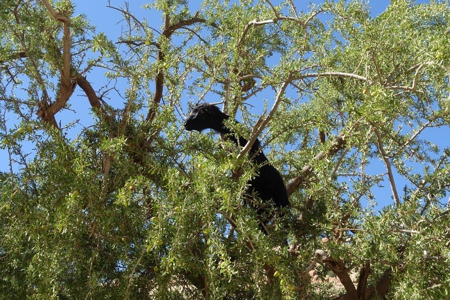 Aan de voetstappen kun je zien dat er vaker wordt gelopen. De geiten zijn ook aan mensen gewend, ze bleven gewoon dooreten in de boom.