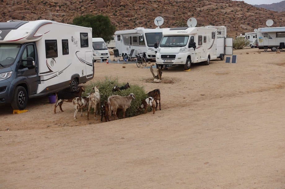 Gisteren hadden we en drukke morgen. We stonden helemaal achteraan op de camping en daar kwam het zonnetje pas om half twaalf over de rots heen. Vooraan kwamen twee plaatsen vrij en daar komt de zon een uur eerder, dus verhuizen! De mat moet dan mee en aangezien het wasdag was moest ook de droogmolen mee.