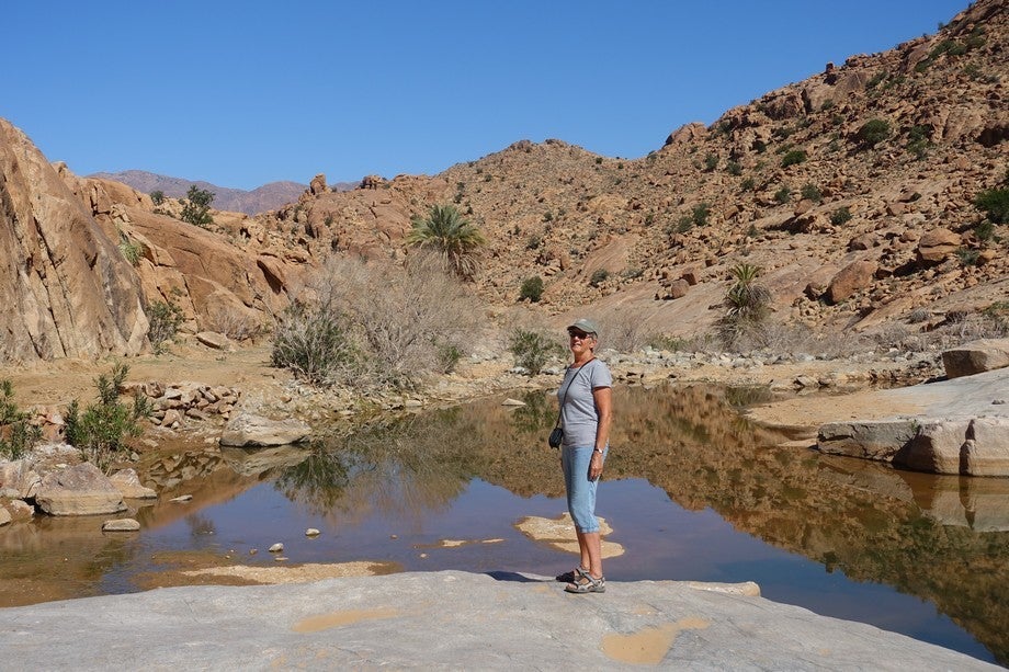 De route is aan de andere kant van het dorp en loopt langs de rivier die bijna droog staat. Hier en daar is een poeltje. Het is er heerlijk rustig en toen de geiten weg waren hoorden we alleen kikkers kwaken.