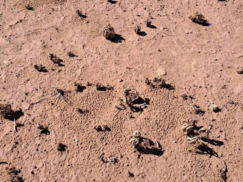 Na de koffie zijn we weer op de fiets gestapt. Nu zijn we een stukje de andere kant opgegaan, waar we vandaan zijn gekomen. Na het dorp is een zijweg naar links, die zijn we ingegaan. De weg eindigde bij een drinkwateropslag. We kwamen langs een plek waar veel rozen van Jericho groeiden, we hebben nog een paar grote meegenomen.