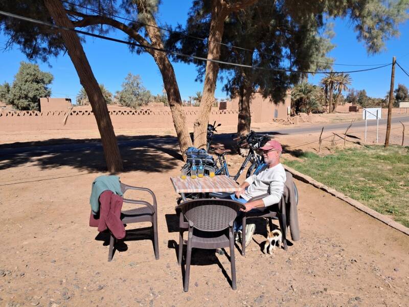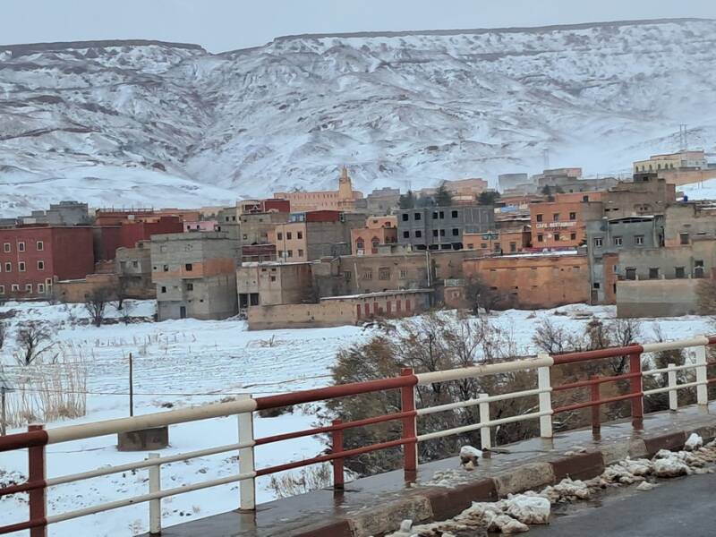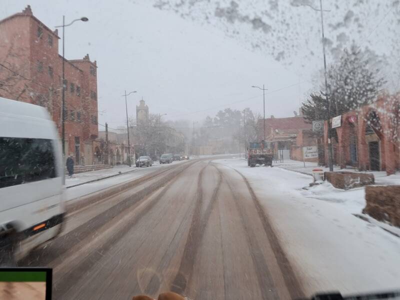 Morgen rijden we naar Agdz. We hadden al eerder via de kloven richting Marrakesh willen gaan maar de weerberichten in die regio waren slecht, boven 1200 meter sneeuw en daaronder veel regen. Er is inderdaad veel sneeuw gevallen in het Atlasgebergte en een aantal wegen, waaronder de Tichka-pas, is afgesloten geweest. Het schijnt allemaal weer open te zijn. Als het nodig is kunnen we bij Agdz nog afslaan richting Agadir.