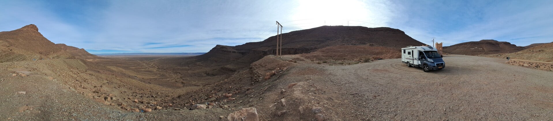 Met de middag waren we op de camping municipal bij Ouarzazate. Dit vonden we geen leuke camping, rommelig, onoverzichtelijk en druk. Dus zijn we doorgereden naar camping L’Escale. Deze ligt 20 kilometer verderop vlakbij de afslag naar Ait Ben Haddou. Hier hebben we al vaker gestaan. Mooie kleine camping met een zwembad. Het waaide wel flink vanmiddag maar naast de camper in de luwte zaten we lekker. Eigenlijk wilden we wel naar Ait Ben Haddou op de fiets, is maar 10 kilometer, maar morgenmiddag geven ze windkracht 6 op dus dat doen we maar niet. Morgen dus Marrakech.
