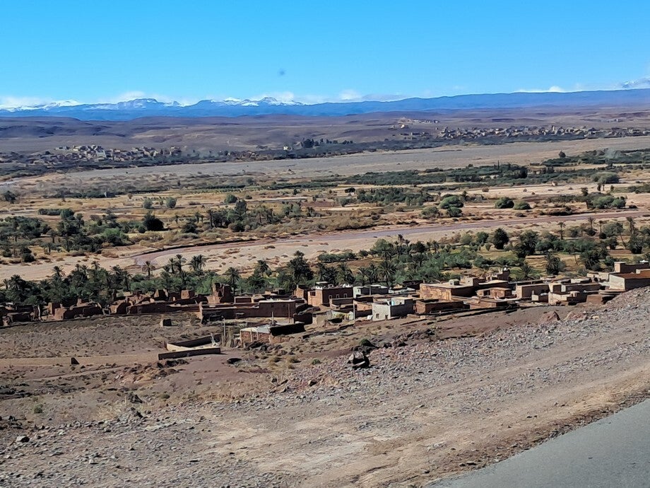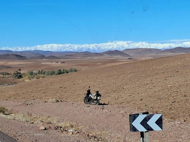 Het was een prachtige bergrit vandaag. Bij Agdz vandaan klimt de weg omhoog tot uiteindelijk bijna 1700 meter hoogte. Veel mooie uitzichten onderweg dus vaak gestopt om te kijken. Op de toppen in de verte ligt inderdaad veel sneeuw.
