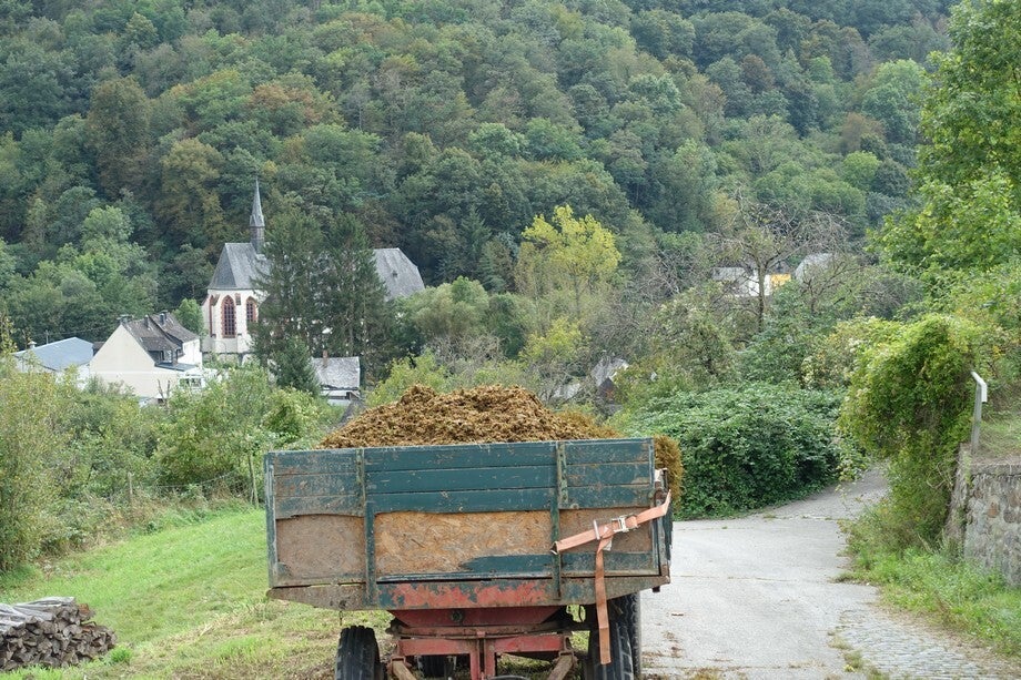 Langs het pad stond nog een kar vol met druivenpulp. De geur was eigenlijk wel lekker!