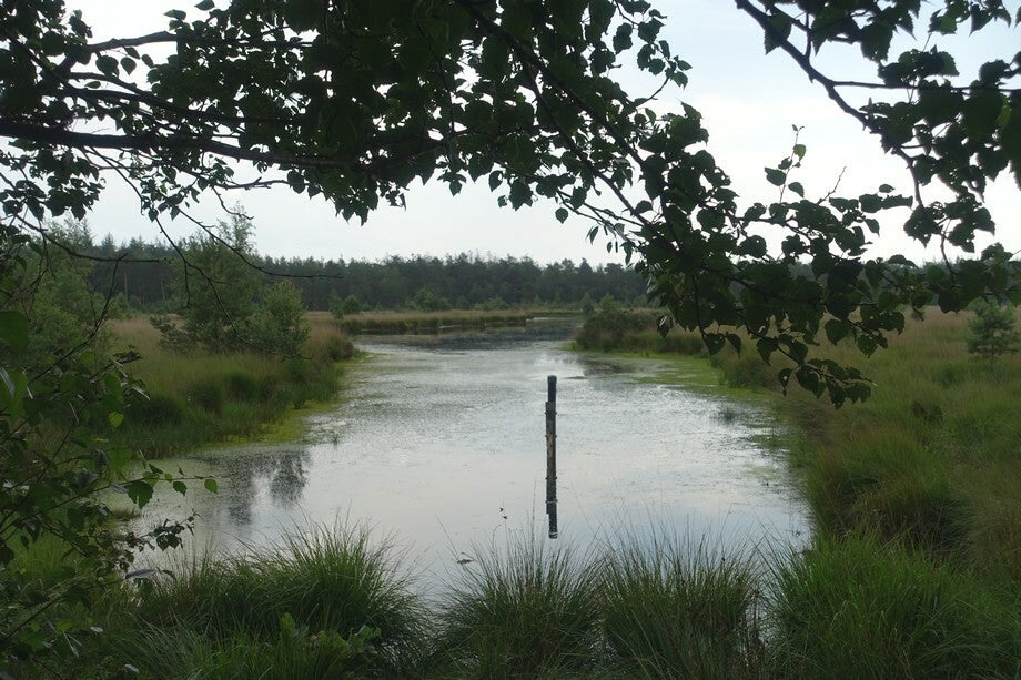 Zondag zijn we over het Fochtelooërveen naar Veenhuizen gefietst, mooie route over de heide en langs watertjes. Hier en daar grazen paarden.