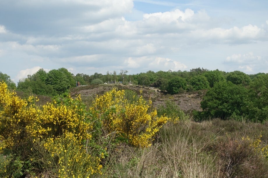 Tegen het eind was er nog een mooi stukje met veel brem, daar kon je ook het uitkijkpunt zien waar we de wandeling zijn begonnen.