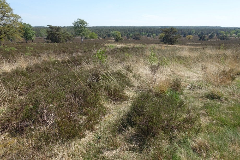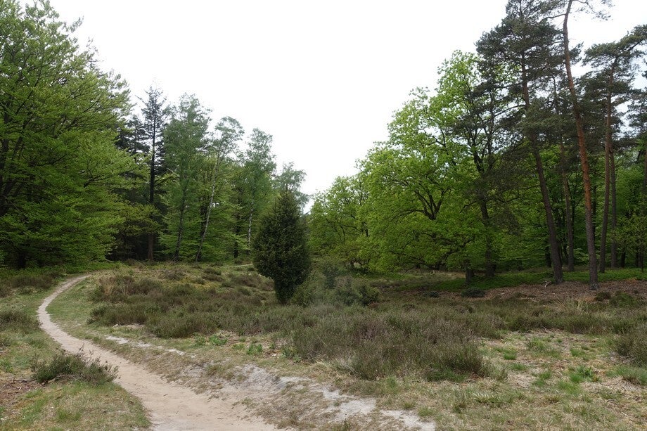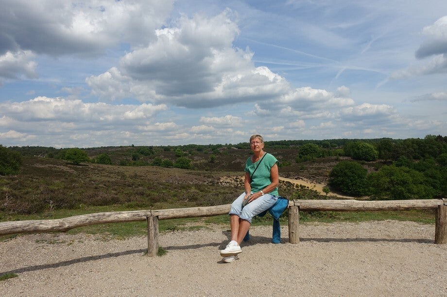 Een uurtje later waren we bij de Posbank, een mooi heuvelachtig heidegebied ten noorden van Rheden. Het was nog te vroeg om te eten dus de lunch ging in de rugtas en we gingen beginnen met de wandelroute van vijf kilometer.