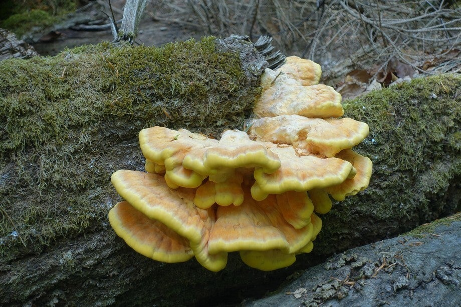 De gele paddenstoelen op de boomstam vonden we ook wel bijzonder.