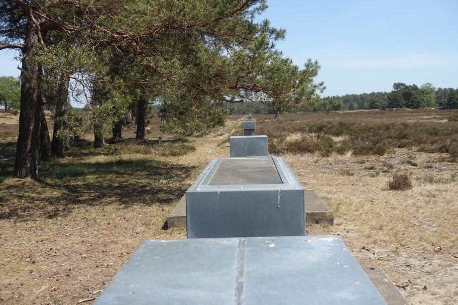 Volgens het infobord is hier in 1957 een ijkinstallatie gebouwd met de bedoeling dat hier instrumenten die gebruikt worden voor landmetingen geijkt zouden kunnen worden. Men dacht toen nog dat de installatie zeker 100 jaar gebruikt zou gaan worden maar dat werd de helft want toen kwam GPS hiervoor in de plaats en de satelieten. Nu is het een rijksmonument geworden.
