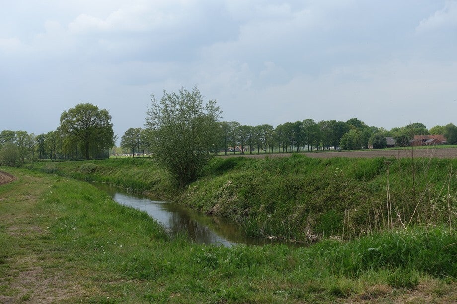 Over bosweggetjes, langs weilanden, akkers en sloten, over hekken naar de Berkel. Daar bloeit de brem en werd de lucht donker.