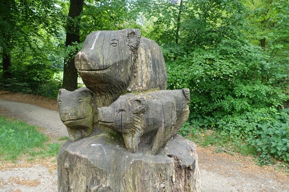 Het pad dat we wilden lopen was afgesloten vanwege het broedseizoen en daarom liepen we op een gegeven moment aan de verkeerde kant van het hek over een ruiterpad. Het liep goed en we konden ook de schapen zien lopen, aan de goede kant. Aan de andere kant liep ook het pad waarover we terug wilden. Gelukkig lag er een boomstam en konden we daarover naar de goede kant. Via de Valenberg ging het pad terug naar waar we waren begonnen. Een mooi rondje van bijna 5 kilometer. Onderweg dachten we bijenkasten te zien maar dat was dus heel iets anders.