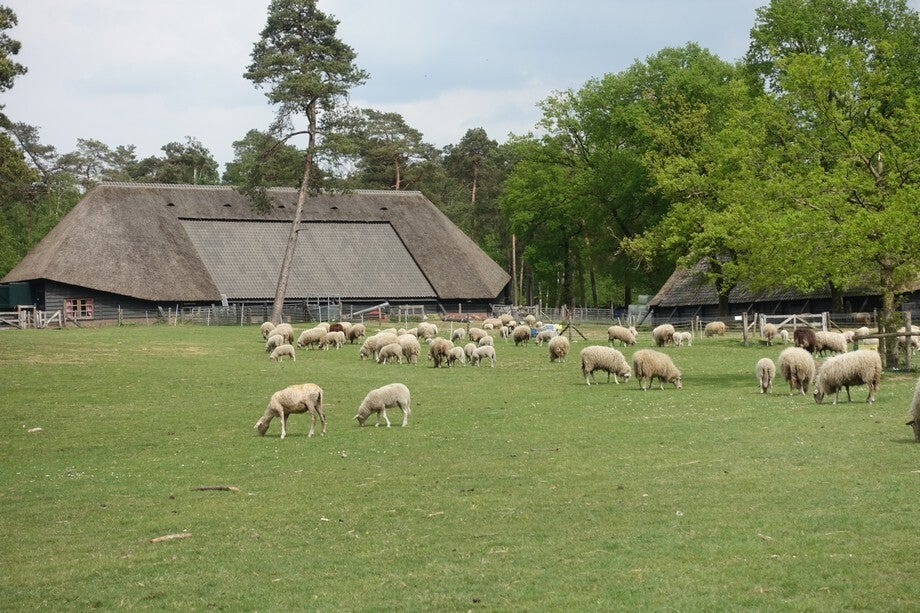 Het was toch nog 16 kilometer fietsen en om half een waren we bij de schaapskooi. Eerst maar onze broodjes opgegeten en toen aan de wandel.