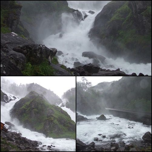 We werden wakker en hoorde getik op het dak het regent, na het eten de tanken geleegd. En zijn aan de rit gegaan met de bedoeling via Voss was niet zo vonden wij naar Flam. Daar aan gekomen eerst even gekeken wat de trein koste, dat hebben we maar niet gedaan zo duur is het. Het kwam omgerekend op 100 € dat kunnen we beter ergens anders voor gebruiken. We zijn daar wel aan de wandel gegaan, was erg mooi.