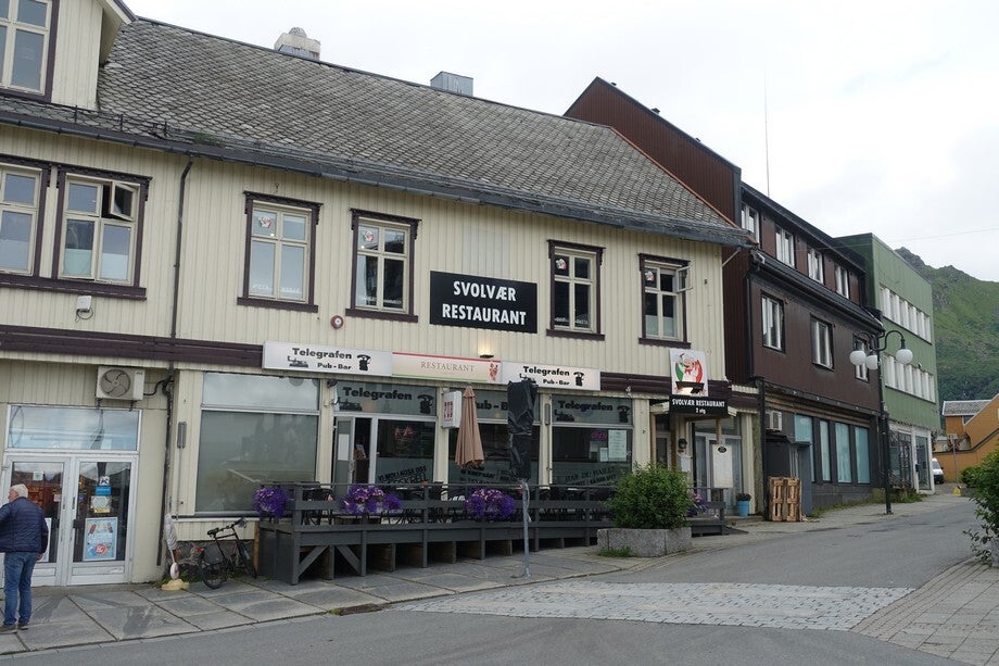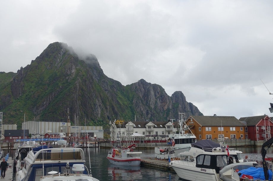 We moesten eerst weer door het dorp terug naar de doorgaande weg, die bracht ons weer bij de E10, een vreselijk drukke weg. Ons eerste doel was Svolvaer, de grootste stad op de Lofoten. Bij de toeristinfo wilden we reserveren voor de veerboot van Moskenes naar Bodo op het vaste land.