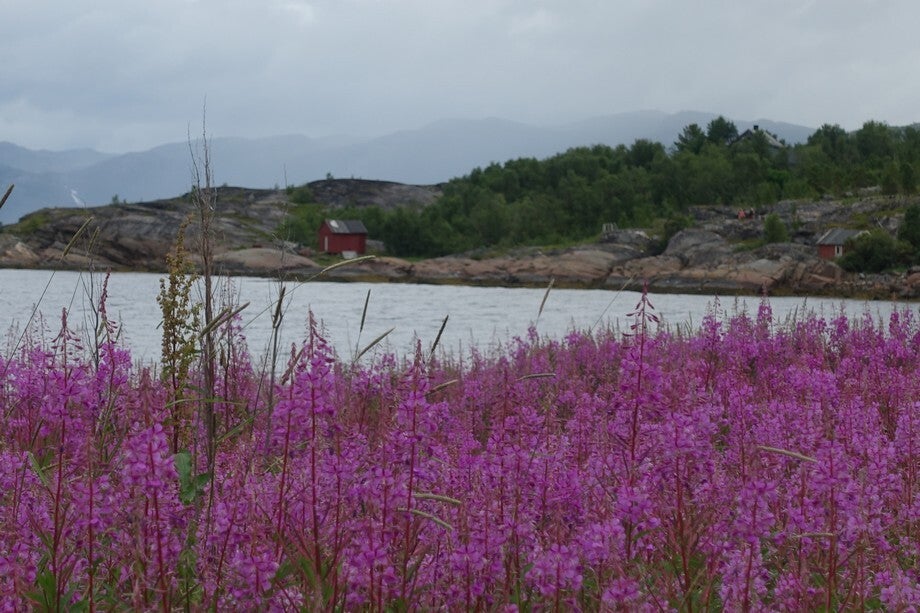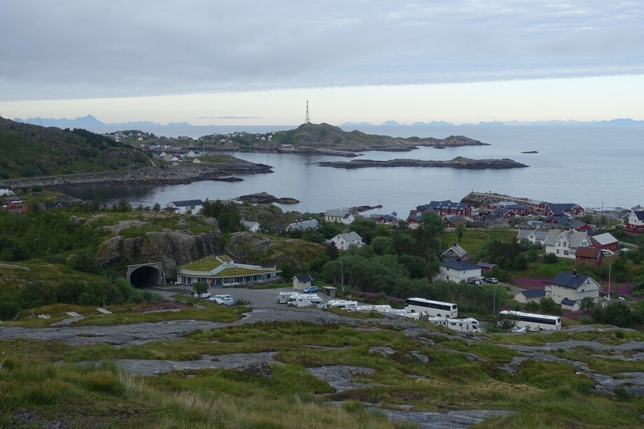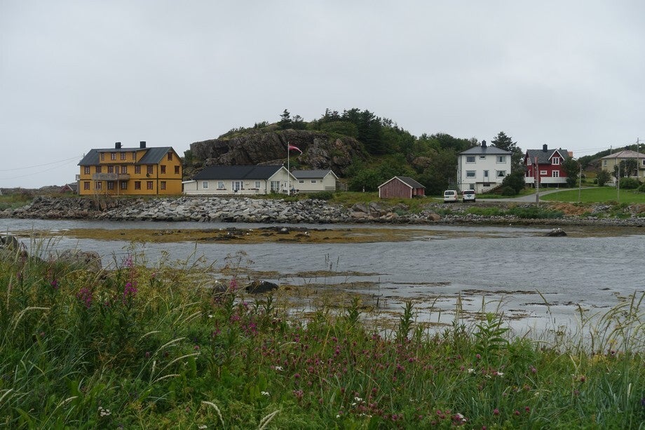 De toegangsweg naar Henningvaer is een doodlopende smalle weg met uitwijkplaatsen. De route is prachtig met veel kleine eilandjes voor de kust. Overal stonden auto’s geparkeerd, ook op de uitwijkplaatsen en het was erg druk. Voor de stoplichten voor de brug zijn we omgekeerd. Er was geen doorkomen aan. Erg jammer maar een volgende keer beter.
