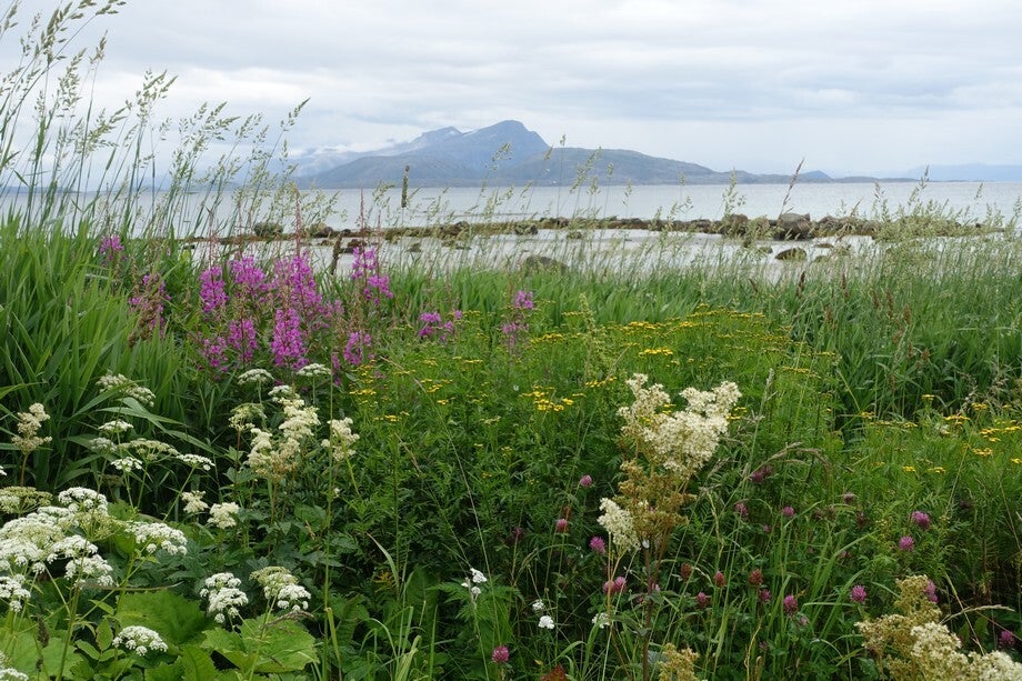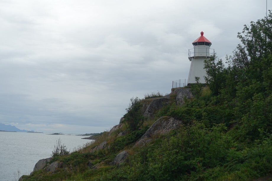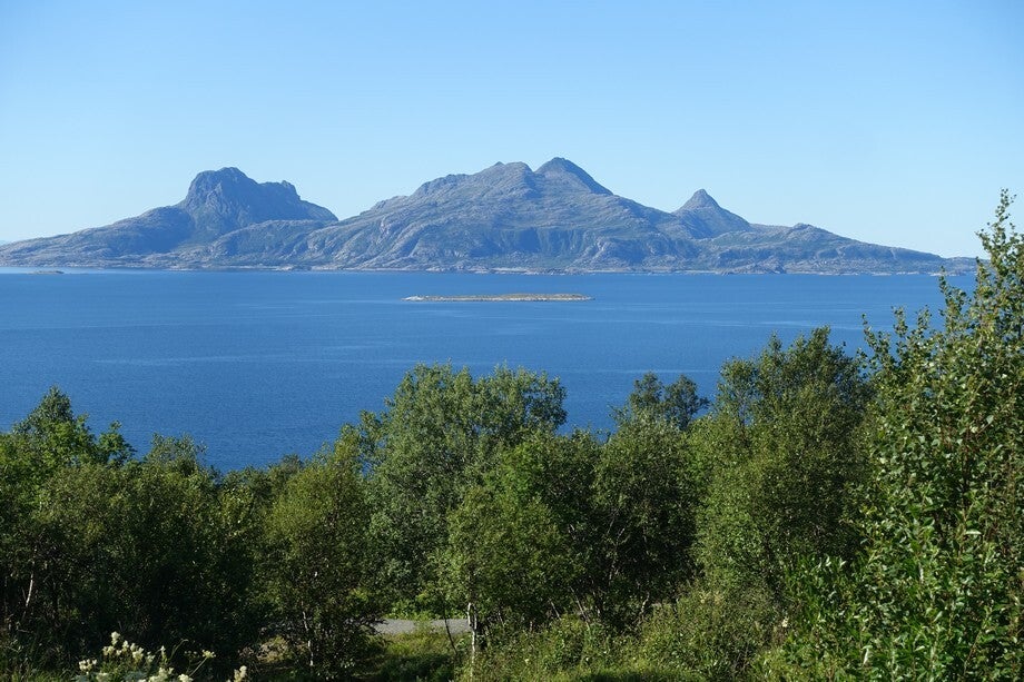 Vanaf de P heb je mooi uitzicht op zee en een stukje hoger ook op Bodo.