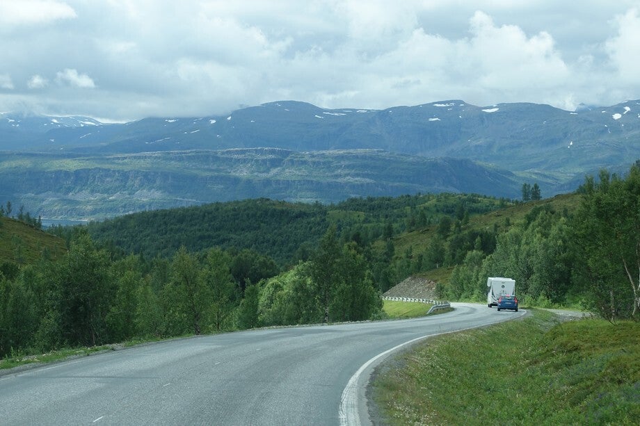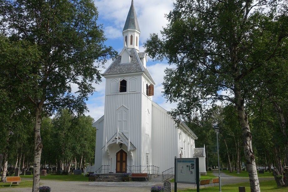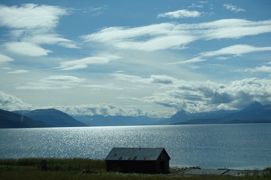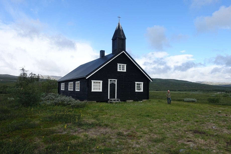 Vanmorgen zijn we weer gaan rijden. Eerst ging de route over een mooie hoogvlakte. Onderweg was er nog een houten Sami-kapelletje.
