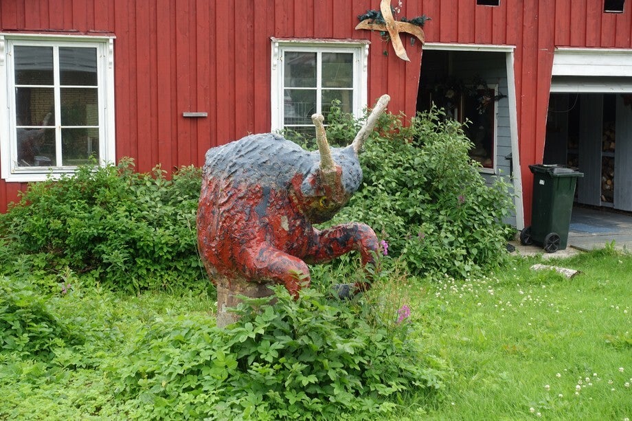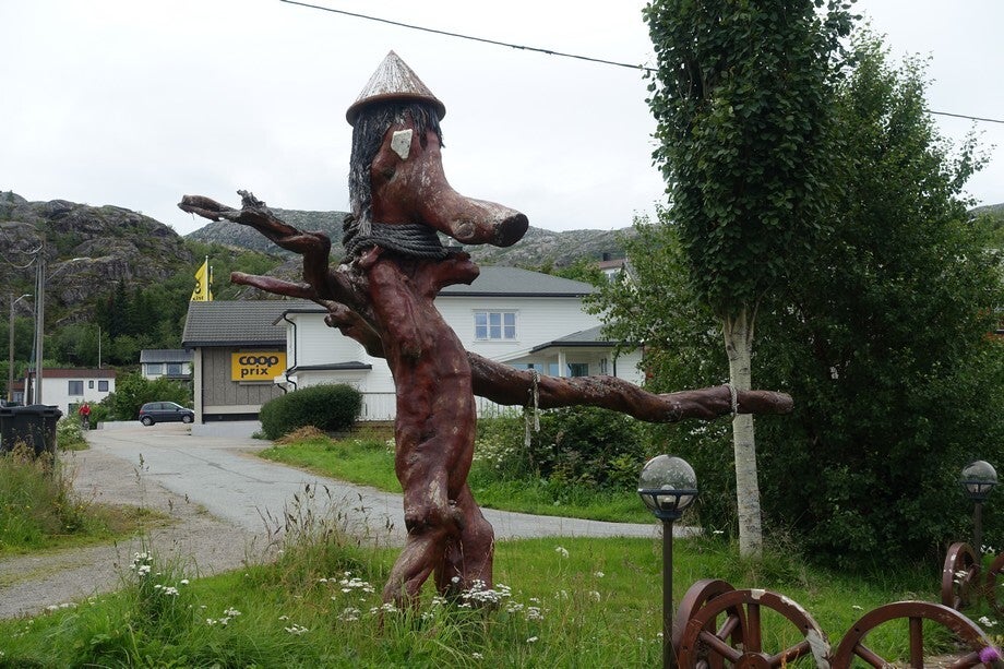 In het dorp kwamen we twee mooie trollen tegen. Op het eind staat de kerk en overal is het water met mooie uitzichten.