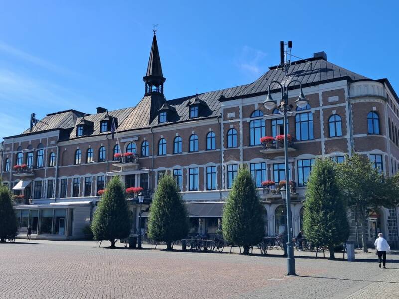 Het badhuis tevens restaurant was gesloten. Het stamt uit de negentiende eeuw toen Varberg een chique badplaats werd. Ernaast ligt de vesting die uit de zeventiende eeuw dateert. Tot 1930 werd het gebruikt als gevangenis en tegenwoordig zit het museum over de geschiedenis van de stad erin. De eerste vesting werd echter al in de dertiende eeuw gebouwd.