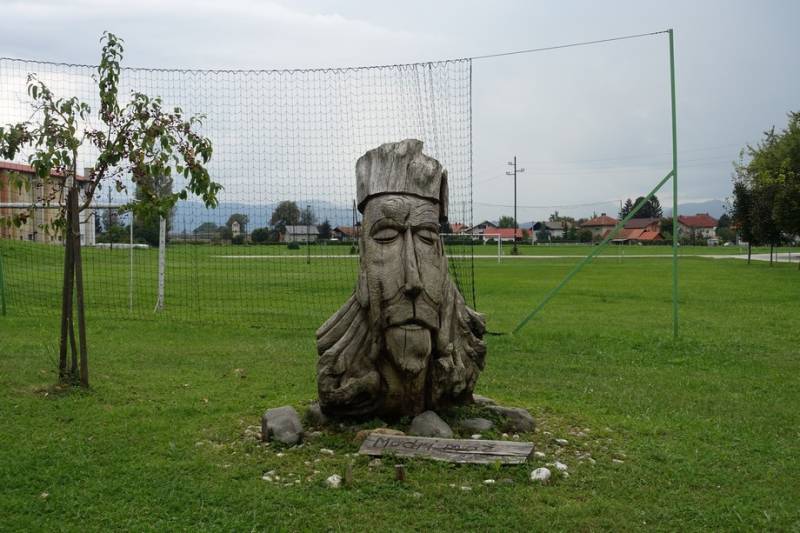 Langs de route staan een aantal leuke houtsnijwerken. We kwamen door kleine dorpjes die allemaal wel een mooie kerk hebben. In een dorpje zijn we naar de touristeninfo gegaan en daar kregen we fietskaarten mee. De mevrouw vertelde dat er in de buurt mooie grotten zijn dus zijn we daarheen gefietst.