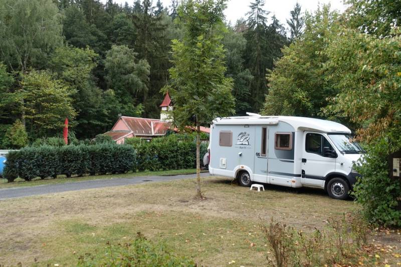 Nu staan we op een camping aan een riviertje in een bosrijk gebied vlakbij het plaatsje Plana. De laatste twee km ging over een smal hobbelweggetje en hier rijden geen treinen!