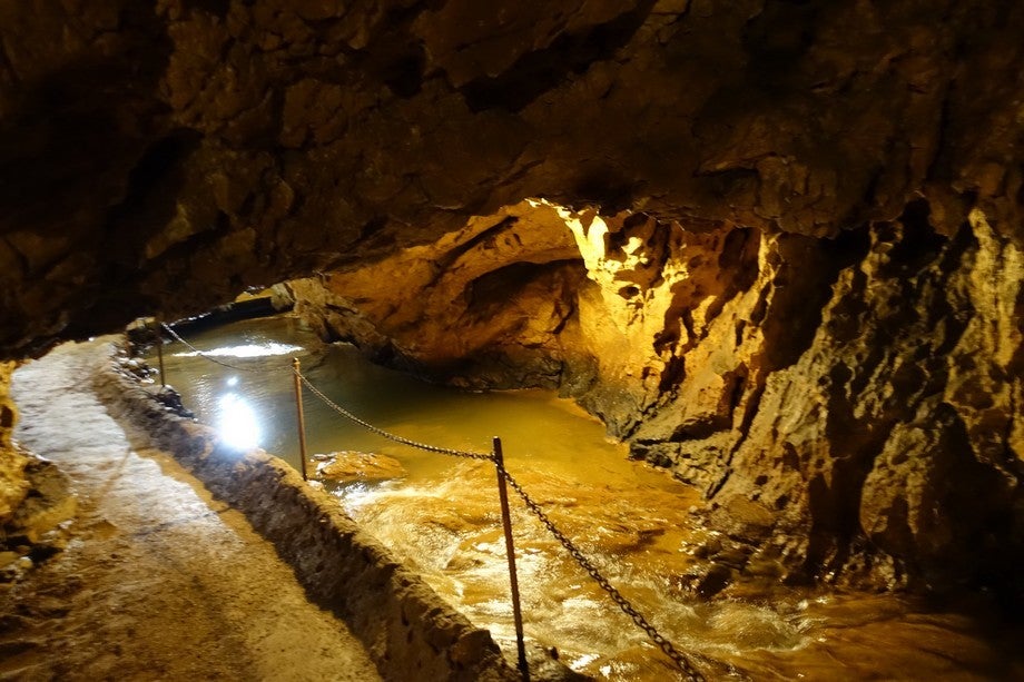 Toen we naar binnen gingen was het nog erg mooi weer. Het was ook heel mooi binnen met hele smalle lage gangen en een waterval onder de grond. Echt de moeite waard! De gids liep alleen wel snel, ik had niet zoveel tijd om foto’s te maken.