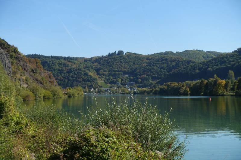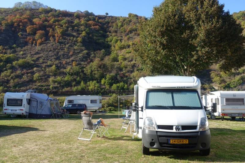 Het was toch wel een beetje druk op de camping met aan de ene kant de trein en aan de andere kant een drukke verkeersweg dus zijn we maar weer een stukje verder gereden. We staan nu in Valwig, 4 km voorbij Cochem. Hier is een leuke cp met uitzicht op de Moezel.