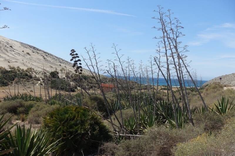 Ons doel was Playa de Monsul, zo’n vijf kilometer voorbij San Jose. De route gaat op en neer over een onverharde weg door een vallei met zijpaden naar de stranden. Voorbij Monsul gaat de weg steil omhoog naar de vuurtoren. Dat hebben we maar niet gedaan want het waaide nogal.