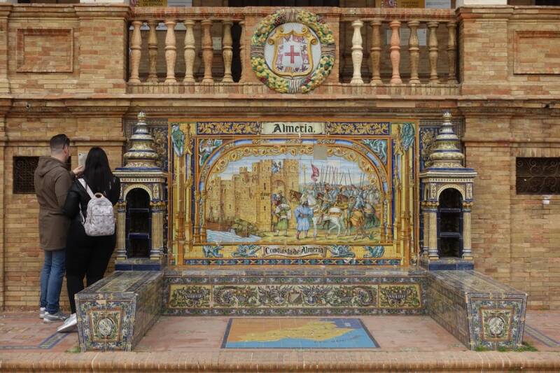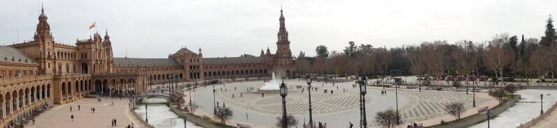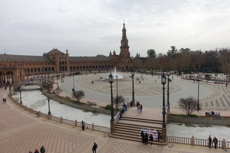 Dit plein heeft de vorm van een enorme halve cirkel met prachtige gebouwen. Tijdens de wereldtentoonstelling van 1929 was dit het Spaanse paviljoen. Onderaan zie je 52 tegelmozaïeken waarop de provincies zijn afgebeeld. Het plein heeft ook als decor gefungeerd voor films, Lawrence of Arabia, Star Wars en The Dictator.