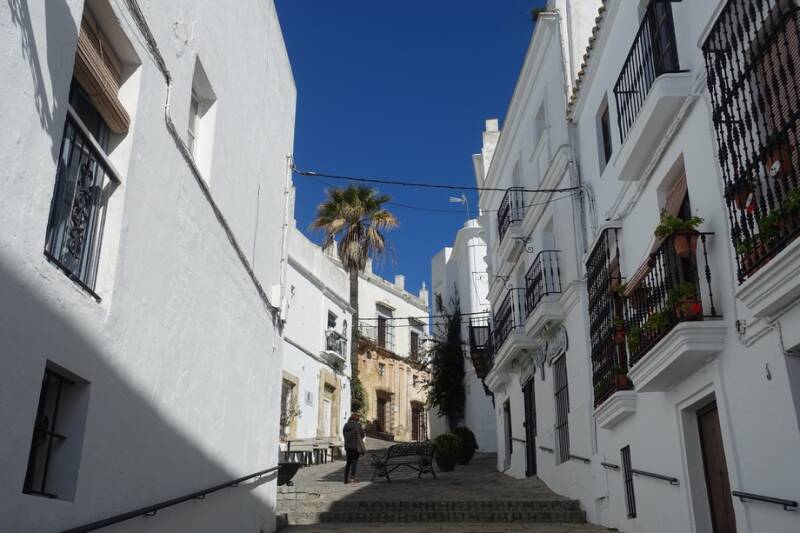 De rit was 200 km. In het reisboek stonden als tip Cadiz en Jerez de la Frontera vermeld. Wij wilden liever naar een klein dorpje. Dit werd Vejer de la Frontera, een klein, wit stadje boven op een heuvel.