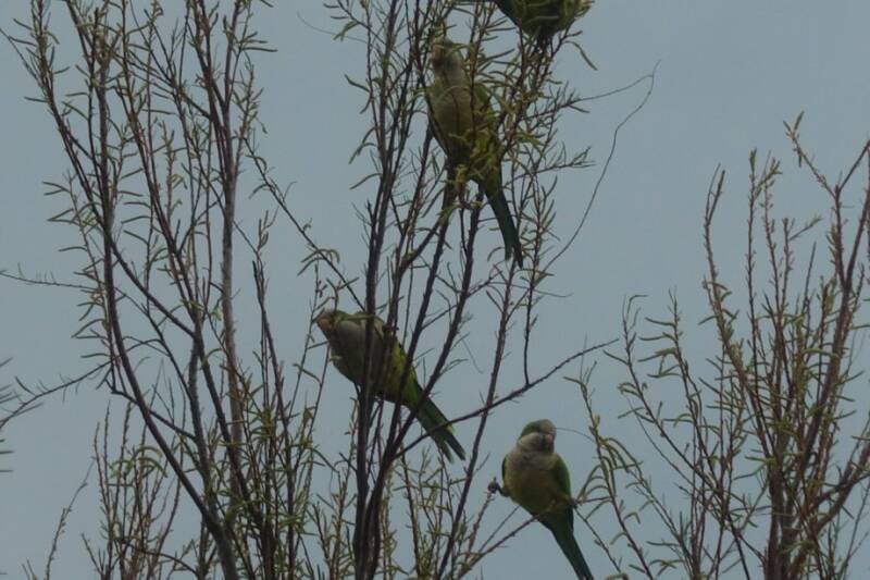 Er leven hier hele zwermen grote groene parkieten. We zagen dat ze takjes “knippen” met hun snavel. Ze zijn dus nesten aan het maken. Als ze opvliegen krijsen ze heel hard.