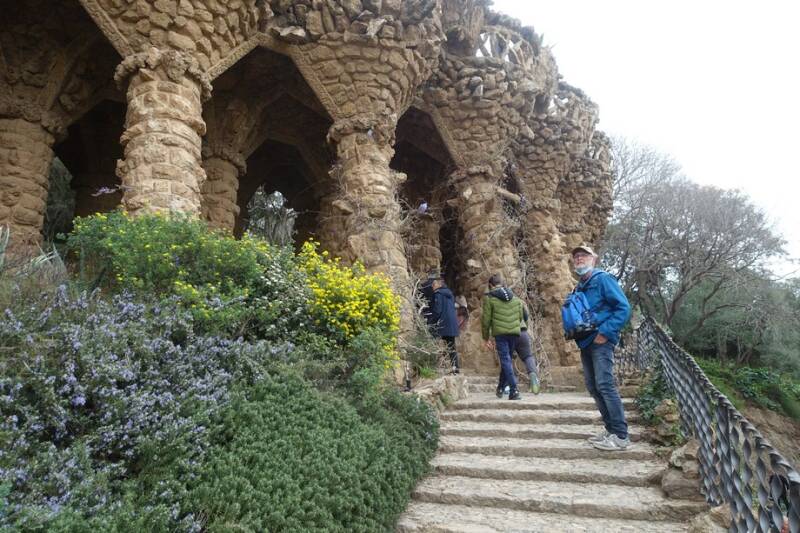 Dit park heeft typische Gaudi bankjes en zuilen en is leuk om doorheen te lopen. Bij de lange bank heb je mooi uitzicht op de stad. Het was een beetje donker maar we hebben maar één klein buitje gehad en toen konden we schuilen in de ruimte onder de lange bank.