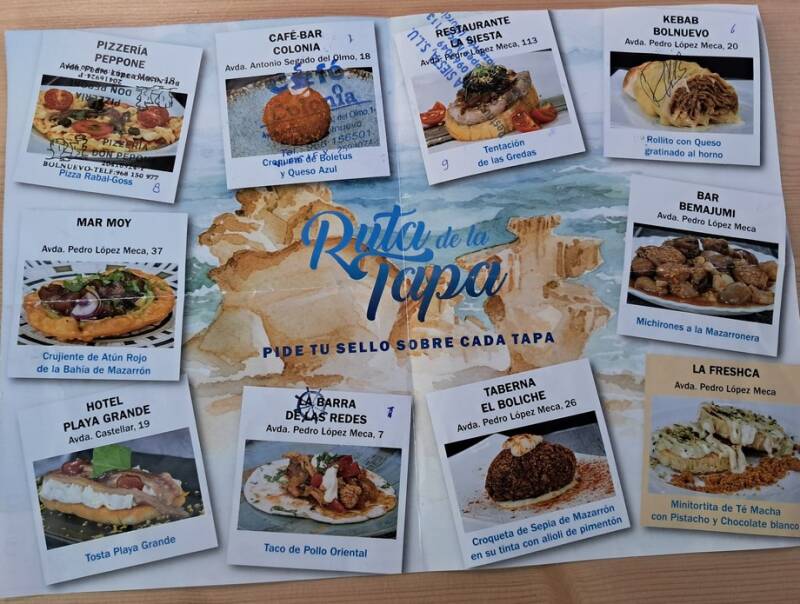 Deze week is er een tappasroute in Bolnuevo, het dorpje even verderop, en daar zijn we twee keer gezellig met zijn vieren wezen tappas proeven. Er zaten erg lekkere tussen!