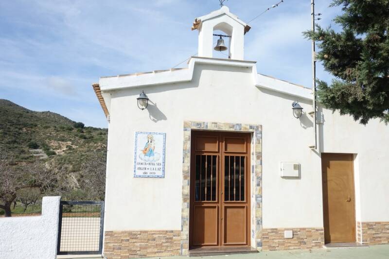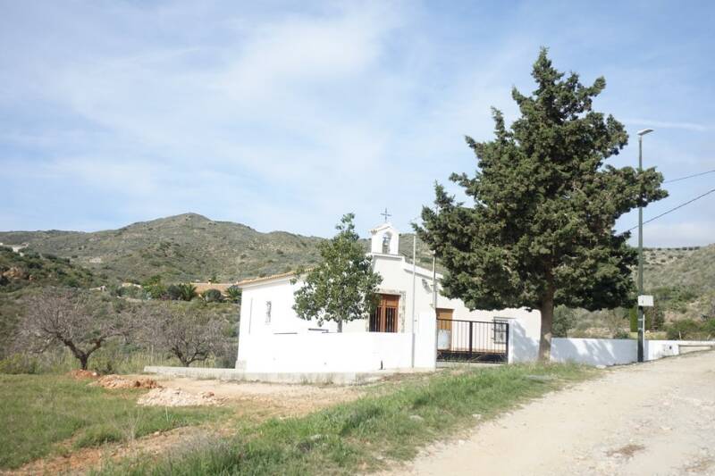 Het beginpunt is 8 kilometer hier vandaan, daar hebben we de fietsen neergezet en toen aan de wandel. Het is heel stil op de route maar heel af en toe komt er een auto door terwijl het pad toch niet echt geschikt daar voor is. In het laag gelegen deel stroomt hier en daar water over het pad. Na ongeveer drie en een halve kilometer kom je de eerste huizen tegen onderaan de witte rotsen en nog een kilometer verder na een laatste klimmetje is dan het witte kerkje. Hier omheen staan ook wat huizen en heb je mooi rondom uitzicht. Op een bankje in de schaduw hebben we onze lunch genuttigd. De olijfbomen rondom zaten vol olijven.