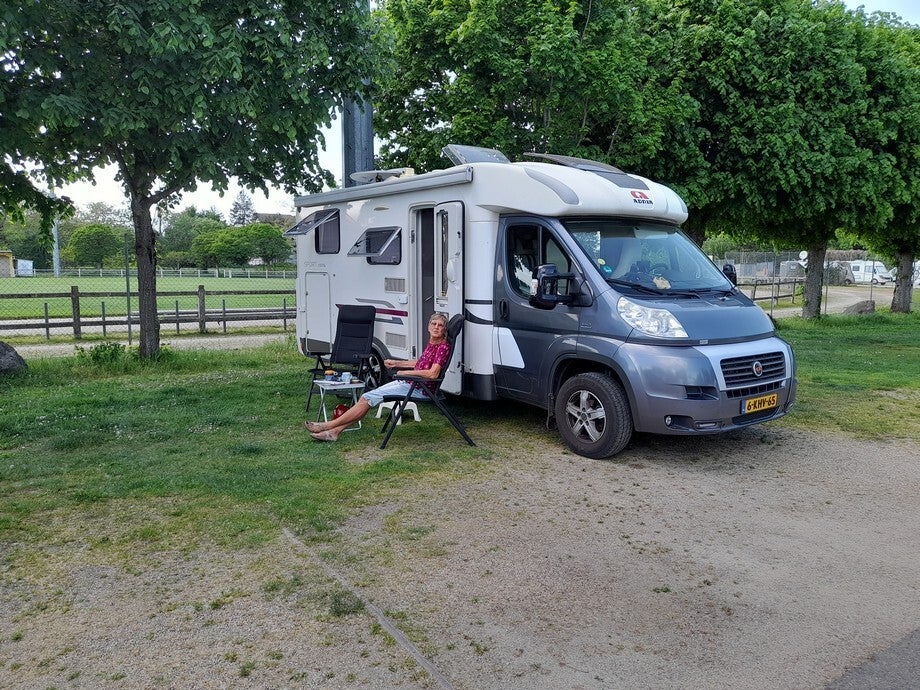 Na 300 kilometer waren we om drie uur op de cp in St. Pourcain sur Sioule. De plaats is rustig gelegen aan de rivier achter het voetbalveld en is een mooie gratis plek dus er staan altijd veel campers. Zo ook deze keer maar er was nog een plekje aan de schaduwkant vrij, gelukkig maar want het was erg warm.