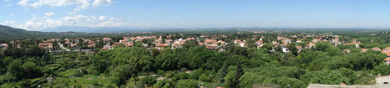 Bij het station van Argeles la Ville begint de fietsroute naar Sorede. Dit dorp ligt een stuk hoger dan Argeles. Hierna komt het stadje Laroque-des-Alberes. Hier lopen we dan door de straatjes van het oude centrumpje omhoog naar de toren die overgebleven is van het kasteel De La Roca. Hier heb je prachtig uitzicht over het stadje en over de Roussillion. Het was helaas niet helder, meestal zijn de bergen aan de overkant van de vallei beter te zien.