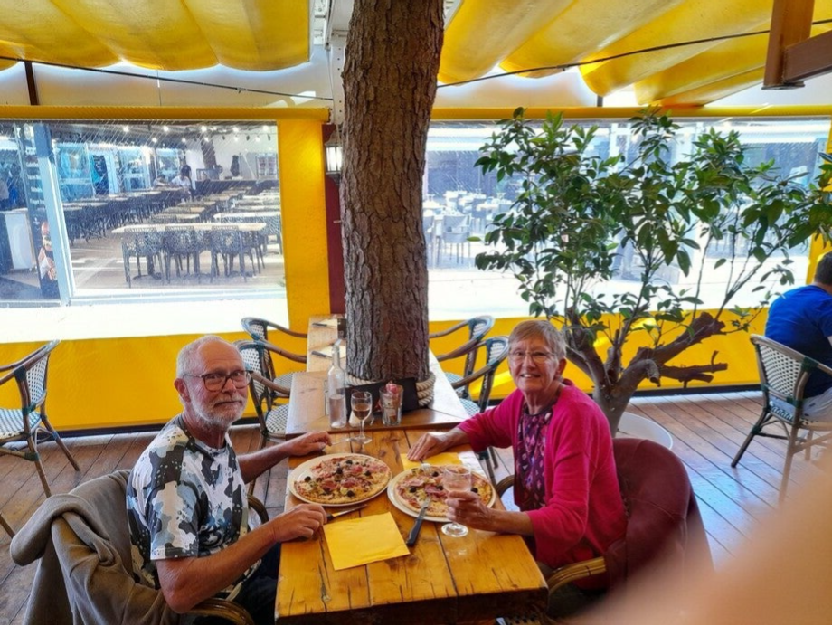 Gistermorgen in de zon gezeten en ’s middags zijn we naar de winkelstraatjes van Argeles Plage gelopen, zo’n twee kilometer van de camping, om heerlijk geurende zeepjes te kopen. Er is een winkeltje dat zoveel kleuren en geuren heeft dat je er blij van wordt. Hier moeten we altijd even een paar stukjes meenemen. ’s Avonds zijn we op de fiets nog een keer terug gegaan om in één van de vele restaurantjes pizza te eten.