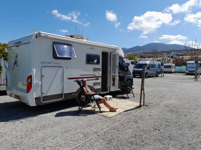 Hier werd al snel duidelijk dat de motor van de ruitenwisser kapot is, wat we zelf ook al dachten. De nieuwe moet uit Madrid komen, dat duurt een paar dagen. Zolang het niet regent is het allemaal niet zo erg. We willen hier toch wandelen in de buurt en naar de stad.