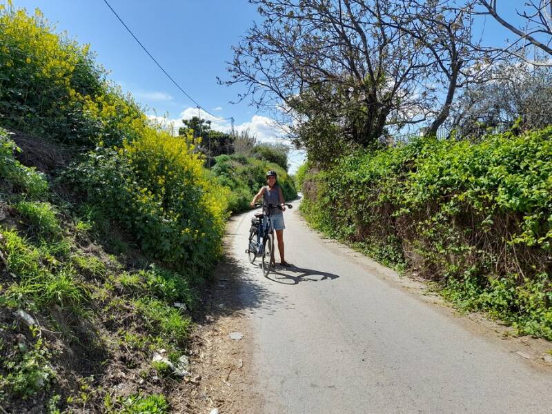 De fietsen hebben we maar weer gestald bij Isabel tussen de scooters,en zelfs vast gemaakt aan een boom.