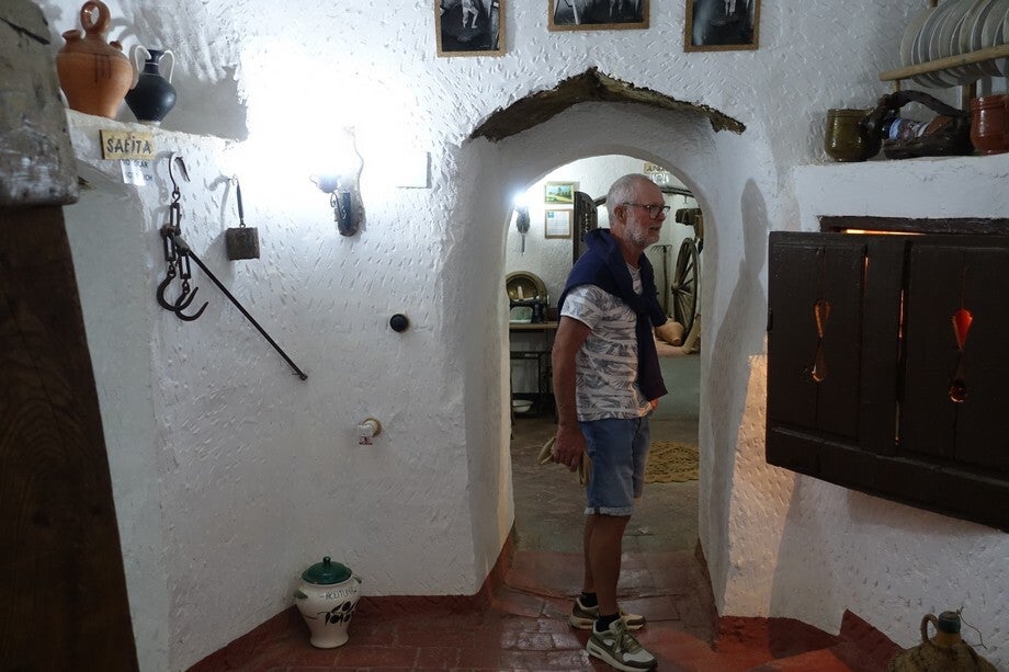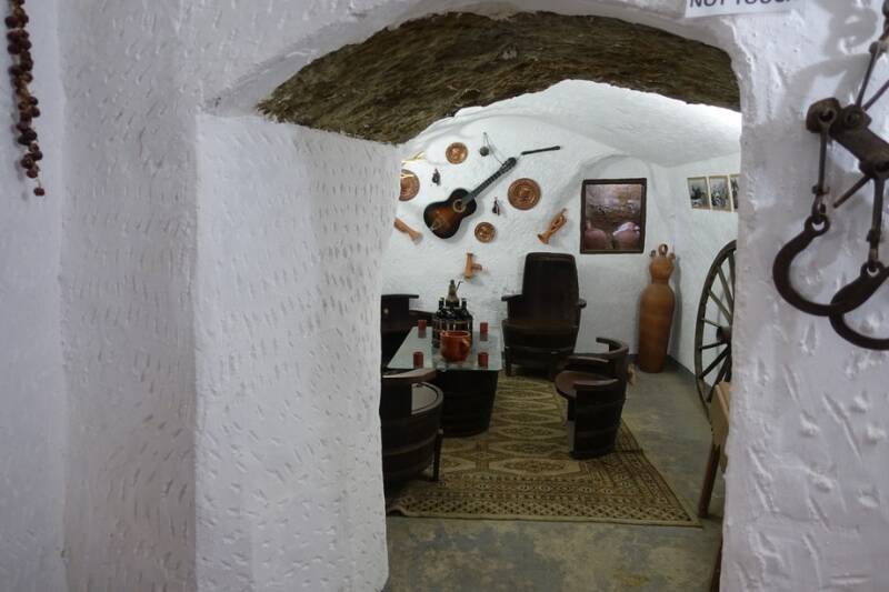 We kwamen bij een klein museum en de eigenaar vertelde ons dat dat is omdat er in de grot zelf geen ramen zijn en dus geen daglicht. Alle grotwoningen hebben minstens twee schoorstenen voor de luchtcirculatie. Vroeger was er ook geen voordeur maar hing er alleen een gordijn, ook voor de frisse lucht. De temperatuur binnen is het hele jaar door tussen de 18 en 22 graden. Voorheen stond het vee in de winter ook binnen. De grot waar we in waren was tot 1965 bewoond geweest.