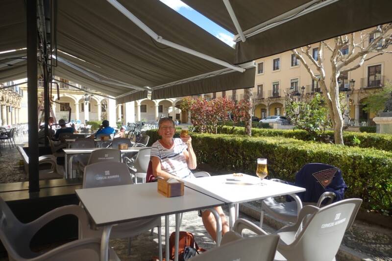 Bij dit plein vandaan zijn we gaan lopen. Eerst door brede straten en later omhoog door smalle straatjes. De lunch werd een broodje shoarma want de terrasjes zaten bomvol Spanjaarden. Was ook lekker!